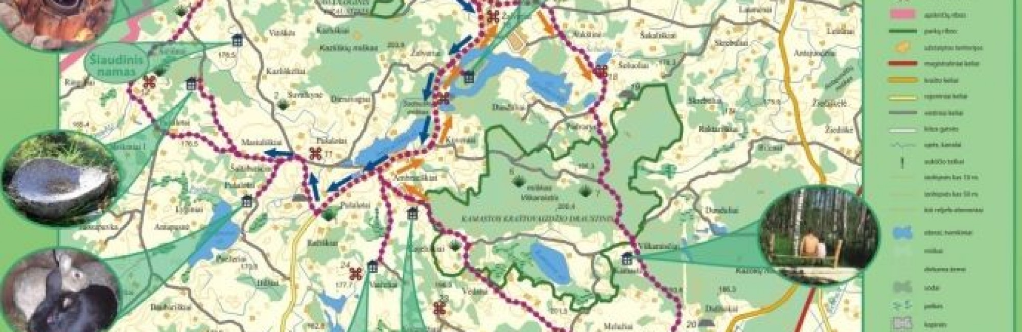 Šis pažintinis maršrutas jums atskleis tikrą, nepagražintą kaimo vaizdą, smagius, tačiau kartais sunkiai pravažiuojamus kaimo kelius, atves į ūkininkų sodybas. Susipažinsite su krašto kultūrinėmis, istorinėmis vertybėmis, įdomiais gamtos objektais. Tačiau maloniausius įspūdžius patirsite, jei kelionėje jus lydės gidas, Jūs ne tik pasigrožėsite nuostabiais vaizdais, bet sužinosite daug įdomių faktų, istorijų, pasakojimų. Jums neteks klaidžioti ar ištisai stebėti žemėlapį ir bijoti, ar pasirinkote tą kelią. Rekomenduojama maršruto pradžia – kempingas „Obuolių sala“.