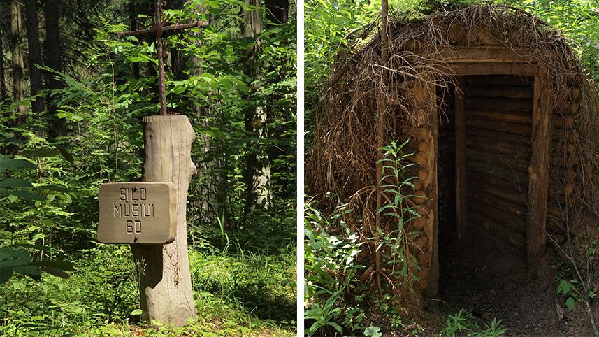Vytauto apygardos, Lokio rinktinės, Vyties kuopos partizanų dislokacijos ir mūšio vieta. Mūšio vietoje atstatytos dvi žeminės, į kurias nukreipia kelio ženklas kelyje Antazavė – Dusetos.