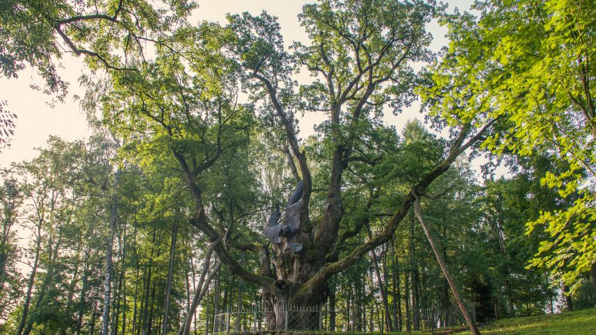 Tame pačiame dvaro parke galėsite apžiūrėti galiūną Stelmužės ąžuolą. Ąžuolai įprastai gyvena po 400 – 500 metų, o šis plačiašakis senolis juos pergyveno keletą kartų. Beveik dviejų tūkstančių metų senumo ąžuolas yra vienas seniausių medžių Europoje ir neabejotinai seniausias Baltijos šalyse. Ąžuolo kamienas, kurį apglėbti reikia dešimties vyrų, yra dvigubai storesnis už bet kurio kito Lietuvoje augančio medžio kamieną.